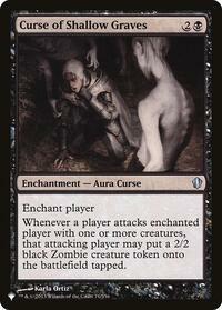 Whenever a player attacks enchanted player with one or more creatures, that attacking player may put a 2/2 black Zombie creature token onto the battlefield tapped.