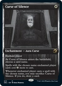 Whenever enchanted player casts a spell with the chosen name, you may sacrifice Curse of Silence. If you do, draw a card.