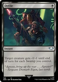 Target creature gets -1/-1 until end of turn for each Swamp you control.