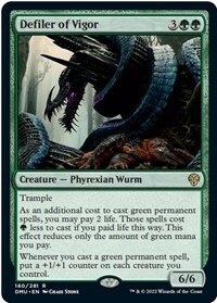 As an additional cost to cast green permanent spells, you may pay 2 life. Those spells cost G less to cast if you paid life this way. This effect reduces only the amount of green mana you pay.