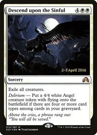 Delirium — Put a 4/4 white Angel creature token with flying onto the battlefield if there are four or more card types among cards in your graveyard.