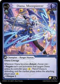 • Negate each card activation that targets Diana unless its controller pays (2). Then if Diana is defending, end the combat phase unless the attacking player pays (2).