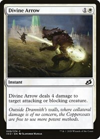 Divine Arrow deals 4 damage to target attacking or blocking creature.