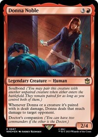 Whenever Donna or a creature it's paired with is dealt damage, Donna deals that much damage to target opponent.