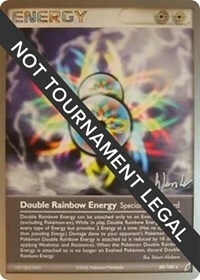 Double Rainbow Energy Can Be Attached Only To An Evolved Pokémon (excluding Pokémon-ex). While In Play, Double Rainbow Energy Provides Every Type Of Energy But Provides 2 Energy At A Time. (has No Effect Other Than Providing Energy.) Damage Done To Your Opponent's Pokémon By The Pokémon Double Rainbow Energy Is Attached To Is Reduced By 10 (before Applying Weakness And Resistance). When The Pokémon Double Rainbow Energy Is Attached To Is No Longer An Evolved Pokémon, Discard Double Rainbow Energy.