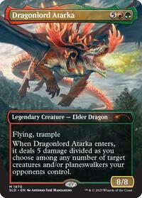 When Dragonlord Atarka enters, it deals 5 damage divided as you choose among any number of target creatures and/or planeswalkers your opponents control.