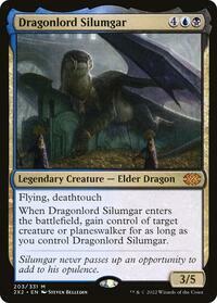 When Dragonlord Silumgar enters the battlefield, gain control of target creature or planeswalker for as long as you control Dragonlord Silumgar.