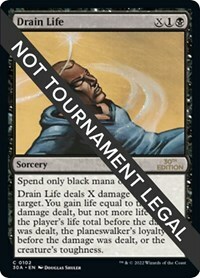 Drain Life deals X damage to any target. You gain life equal to the damage dealt, but not more life than the player’s life total before the damage was dealt, the planeswalker’s loyalty before the damage was dealt, or the creature’s toughness.