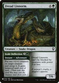 Dread Linnorm can't be blocked by creature with power 3 or less. (Then exile this card. You may cast the creature later from exile.)