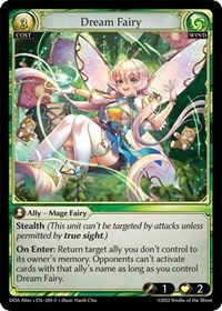On Enter: Return target ally you don't control to its owner's memory. Opponents can't activate cards with that ally's name as long as you control Dream Fairy.