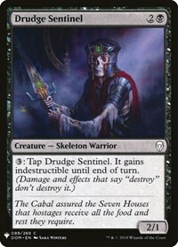 3: Tap Drudge Sentinel. It gains indestructible until end of turn. (Damage and effects that say "destroy" don't destroy it.)