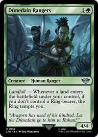 Landfall — Whenever a land enters the battlefield under your control, if you don't control a Ring-bearer, the Ring tempts you.