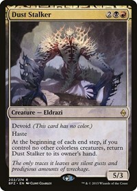 At the beginning of each end step, if you control no other colorless creatures, return Dust Stalker to its owners' hand.
