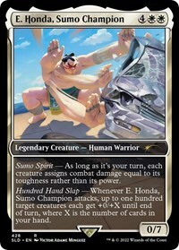Hundred Hand Slap β Whenever E. Honda, Sumo Champion attacks, up to one hundred target creatures each get +0/+X until end of turn, where X is the number of cards in your hand.