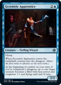 When Eccentric Apprentice enters the battlefield, venture into the dungeon. (Enter the first room or advance to the next room.)