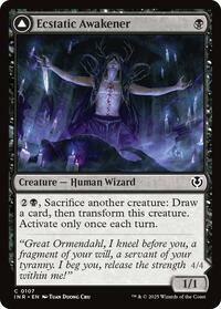 2B, Sacrifice another creature: Draw a card, then transform this creature. Activate only once each turn.