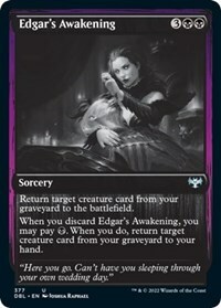 When you discard Edgar's Awakening, you may pay B. When you do, return target creature card from your graveyard to your hand.