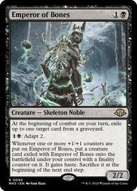 Whenever one or more +1/+1 counters are put on Emperor of Bones, put a creature card exiled with Emperor of Bones onto the battlefield under your control with a finality counter on it. It gains haste. Sacrifice it at the beginning of the next end step.