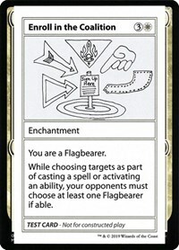 While choosing targets as part of casting a spell or activating an ability, your opponents must choose at least one Flagbearer if able.