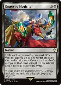 Exile each opponent's graveyard. When you do, choose up to one target creature card exiled this way. Create a token that's a copy of that card, except it's an artifact and it loses all other card types.