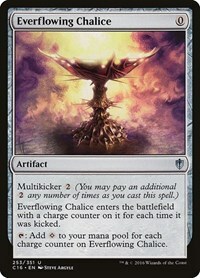 Everflowing Chalice enters the battlefield with a charge counter on it for each time it was kicked.