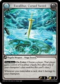 [Class Bonus] On Enter: Choose a player. That player gains control of Excalibur. (Apply this effect only if your champion's class matches this card's class.)
