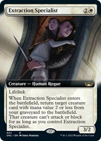 When Extraction Specialist enters the battlefield, return target creature card with mana value 2 or less from your graveyard to the battlefield. That creature can't attack or block for as long as you control Extraction Specialist.