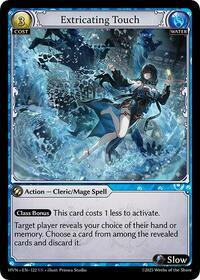 Target player reveals your choice of their hand or memory. Choose a card from among the revealed cards and discard it.
