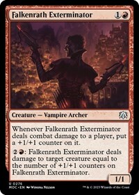 2R: Falkenrath Exterminator deals damage to target creature equal to the number of +1/+1 counters on it.
