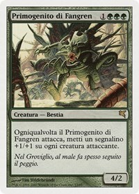 Whenever Fangren Firstborn attacks, put a +1/+1 counter on each attacking creature.