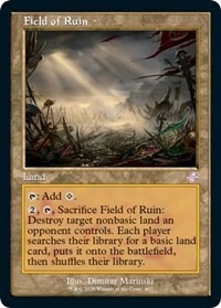2, T, Sacrifice Field of Ruin: Destroy target nonbasic land an opponent controls. Each player searches their library for a basic land card, puts it onto the battlefield, then shuffles their library.