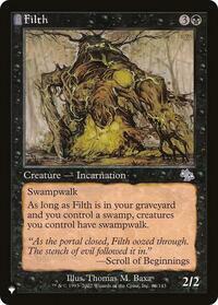 As long as Filth is in your graveyard and you control a swamp, creatures you control have swampwalk.