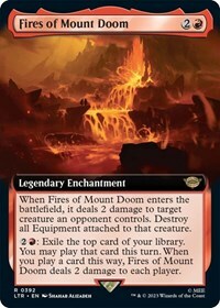 2R: Exile the top card of your library. You may play that card this turn. When you play a card this way, Fires of Mount Doom deals 2 damage to each player.