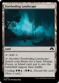 T, Sacrifice Foreboding Landscape: Search your library for a basic Swamp, Forest, or Island card, put it onto the battlefield tapped, then shuffle.