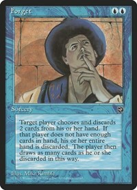 Target player chooses and discards 2 cards from his or her hand. If that player does not have enough cards in hand, his or her entire hand is discarded. The player then draws as many cards as he or she discarded in this way.