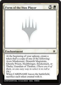 When Form of the Stax Player leaves the battlefield, sacrifice each token created with it.