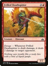 Enrage — Whenever Frilled Deathspitter is dealt damage, it deals 2 damage to target opponent.