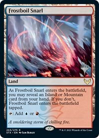 As Frostboil Snarl enters the battlefield, you may reveal an Island or Mountain card from your hand. If you don't, Frostboil Snarl enters the battlefield tapped.