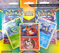 Each Two Pack Blister Contains 2 Xy—furious Fists Booster Packs, A Coin, And Three Promotional Cards: Emboar, Serperior, And Samurott.