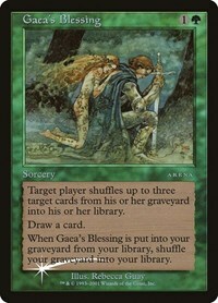 When Gaea's Blessing is put into your graveyard from your library, shuffle your graveyard into your library.