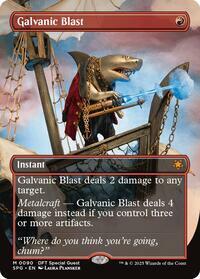 Metalcraft — Galvanic Blast deals 4 damage instead if you control three or more artifacts.
