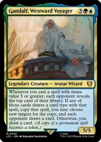 Whenever you cast a spell with mana value 5 or greater, each opponent reveals the top card of their library. If any of those cards shares a card type with the spell, copy that spell, you may choose new targets for the copy, and each opponent draws a card. Otherwise, you draw a card. (A copy of a permanent spell becomes a token.)