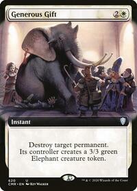 Destroy target permanent. Its controller creates a 3/3 green Elephant creature token.
