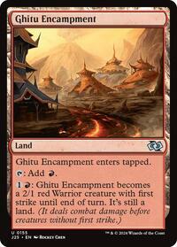 1R: Ghitu Encampment becomes a 2/1 red Warrior creature with first strike until end of turn. It's still a land. (It deals combat damage before creatures without first strike.)