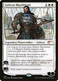 As long as it’s your turn, Gideon Blackblade is a 4/4 Human Soldier creature with indestructible that’s still a planeswalker.