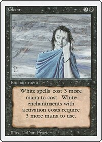 White spells cost 3 more mana to cast. White enchantments with activation costs require 3 more mana to use.