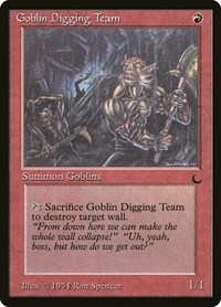 T: Sacrifice Goblin Digging Team to destroy target wall.