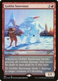 T: Goblin Snowman deals 1 damage to target creature it’s blocking.