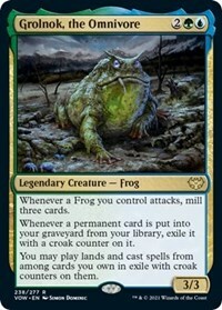 You may play lands and cast spells from among cards you own in exile with croak counters on them.