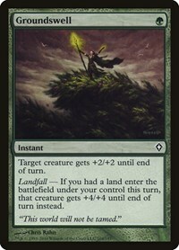 Landfall — If you had a land enter the battlefield under your control this turn, that creature gets +4/+4 until end of turn instead.